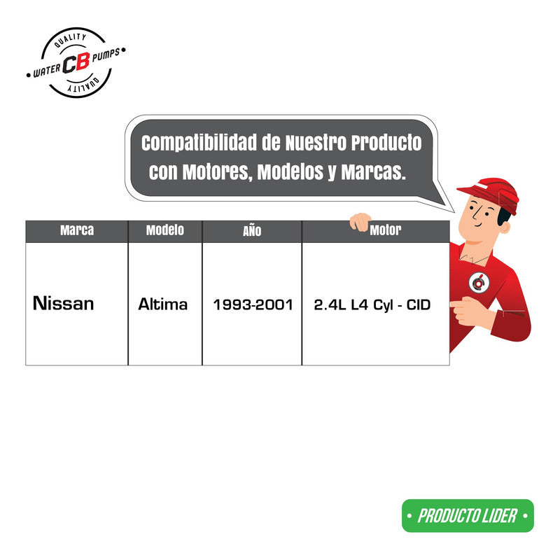 NEW WATER PUMP PREMIUM QUALITY INCLUDES: • Metal Impeller. • Installation Packaging. • Suitable for Car/Truck. Improve the lifespan of your car. •Greater durability. •Water leak correction. •Free Shipping Nationwide. •100% Secure Purchase. To ensure your purchase is a good experience, we suggest observing the following points: 1.- COMPATIBILITY OF THE PART • Check that the part is compatible with your vehicle, compare it with the published photos and information. • Review Compatibility Table. 2.- DELIVERY TIME • Depending on your location is the time of reception of the product. • Enter your Zip Code to find out the Shipping Time and Methods. • Logistics, delivery times, and packaging depend on Mercado Libre. 3.- WARRANTY • All our products have a 60-day warranty (from the date you receive your product). • A broken, wet, burned, rusty and/or scale-infected part invalidates the warranty. 4.- INVOICE • Upon receiving your product, you can generate your invoice online (We'll send you the link in the purchase chat). 5.- RETURNS • The piece must come in good condition and with all accessories included. • Returns are not accepted if it has already been installed or used in your car. We are a Pumping Station with 50 years of experience. • Specialists in the Sale of Automotive Water Pumps. • For Diesel and Gasoline Engines. • All Brands and Applications (Cars, Trucks, Forklifts, Power Plants, Tractors).