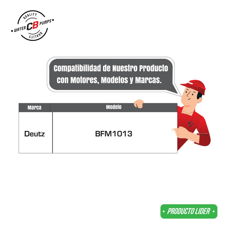 NEW WATER PUMP PREMIUM QUALITY INCLUDES: • Aluminum cover. • 7 holes in the base • Metal propeller. • Installation Packaging. • Suitable for Industrial Machine. Improves the lifespan of industrial machines. •Greater durability. •Water leak correction. •Free Shipping Nationwide. •100% Secure Purchase. To ensure your purchase is a good experience, we suggest observing the following points: 1.- PART COMPATIBILITY • Check that the part is compatible with your vehicle, compare it with the published photos and information. • Review Compatibility Table. 2.- DELIVERY TIME • Depending on your location is the time of reception of the product. • Enter your Zip Code to find out the Shipping Time and Methods. • Logistics, delivery times, and packaging depend on Mercado Libre. 3.- WARRANTY • All our products have a 60-day warranty (from the date you receive your product). • A broken, wet, burned, rusty and/or scale-infected part invalidates the warranty. 4.- INVOICE • Upon receiving your product, you can generate your invoice online (We'll send you the link in the purchase chat). 5.- RETURNS • The piece must come in good condition and with all accessories included. • Returns are not accepted if it has already been installed or used in your car. We are a Pumping Station with 50 years of experience. • Specialists in the Sale of Automotive Water Pumps. • For Diesel and Gasoline Engines. • All Brands and Applications (Cars, Trucks, Forklifts, Power Plants, Tractors).