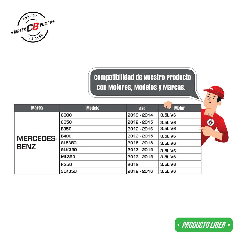 NEW WATER PUMP PREMIUM QUALITY INCLUDES: • Plastic Impeller. • Installation Packaging. (Metal gasket) • Suitable for Car. Improve the lifespan of your car. •Greater durability. •Water leak correction. •Free Shipping Nationwide. •100% Secure Purchase. To ensure your purchase is a good experience, we suggest observing the following points: 1.- COMPATIBILITY OF THE PART • Check that the part is compatible with your vehicle, compare it with the published photos and information. • Review Compatibility Table. 2.- DELIVERY TIME • Depending on your location is the time of reception of the product. • Enter your Zip Code to find out the Shipping Time and Methods. • Logistics, delivery times, and packaging depend on Mercado Libre. 3.- WARRANTY • All our products have a 60-day warranty (from the date you receive your product). • A broken, wet, burned, rusty and/or scale-infected part invalidates the warranty. 4.- INVOICE • Upon receiving your product, you can generate your invoice online (We'll send you the link in the purchase chat). 5.- RETURNS • The piece must come in good condition and with all accessories included. • Returns are not accepted if it has already been installed or used in your car. We are a Pumping Station with 50 years of experience. • Specialists in the Sale of Automotive Water Pumps. • For Diesel and Gasoline Engines. • All Brands and Applications (Cars, Trucks, Forklifts, Power Plants, Tractors).