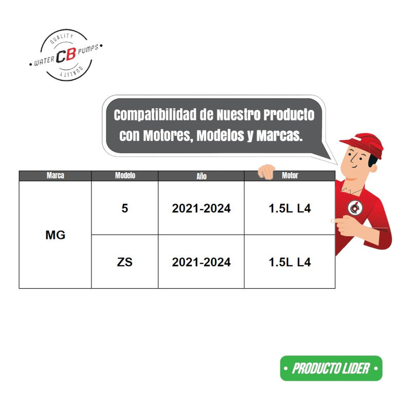 NEW WATER PUMP PREMIUM QUALITY INCLUDES: • Metal Impeller. • Installation Packaging. • Suitable for Car/Truck. Improve the lifespan of your car. •Greater durability. •Water leak correction. •Free Shipping Nationwide. •100% Secure Purchase. To ensure your purchase is a good experience, we suggest observing the following points: 1.- COMPATIBILITY OF THE PART • Check that the part is compatible with your vehicle, compare it with the published photos and information. • Review Compatibility Table. 2.- DELIVERY TIME • Depending on your location is the time of reception of the product. • Enter your Zip Code to find out the Shipping Time and Methods. • Logistics, delivery times, and packaging depend on Mercado Libre. 3.- WARRANTY • All our products have a 60-day warranty (from the date you receive your product). • A broken, wet, burned, rusty and/or scale-infected part invalidates the warranty. 4.- INVOICE • Upon receiving your product, you can generate your invoice online (We'll send you the link in the purchase chat). 5.- RETURNS • The piece must come in good condition and with all accessories included. • Returns are not accepted if it has already been installed or used in your car. We are a Pumping Station with 50 years of experience. • Specialists in the Sale of Automotive Water Pumps. • For Diesel and Gasoline Engines. • All Brands and Applications (Cars, Trucks, Forklifts, Power Plants, Tractors).