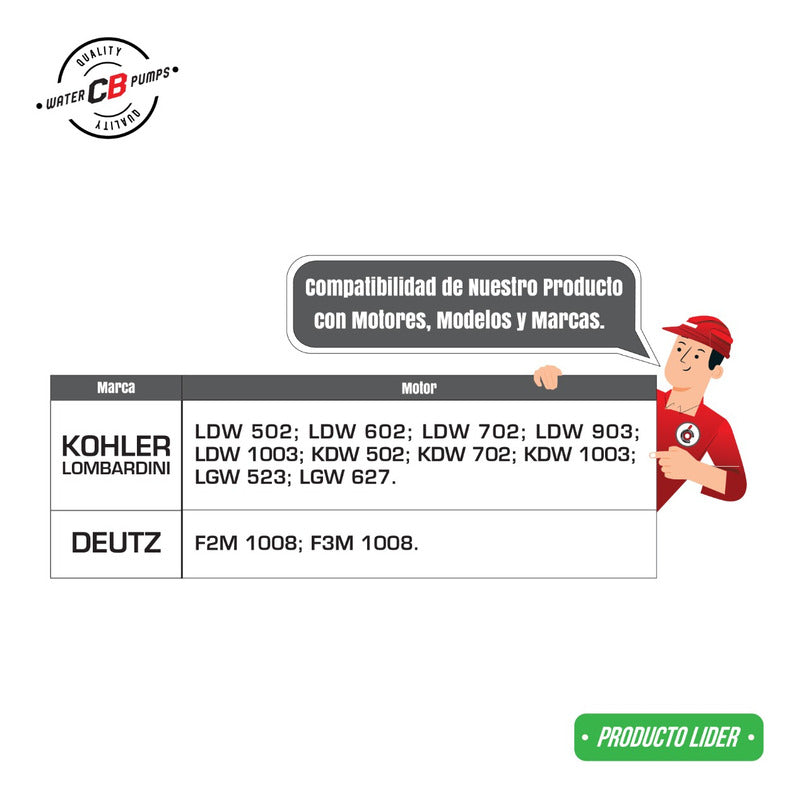 NEW WATER PUMP PREMIUM QUALITY INCLUDES: • Plastic Impeller. • Installation Packaging. • Suitable for Industrial Machinery/Lighting Tower Improve the lifespan of your industrial machine. •Greater durability. •Water leak correction. •Free Shipping Nationwide. •100% Secure Purchase. To ensure your purchase is a good experience, we suggest observing the following points: 1.- COMPATIBILITY OF THE PART • Check that the part is compatible with your vehicle, compare it with the published photos and information. • Review Compatibility Table. 2.- DELIVERY TIME • Depending on your location is the time of reception of the product. • Enter your Zip Code to find out the Shipping Time and Methods. • Logistics, delivery times, and packaging depend on Mercado Libre. 3.- WARRANTY • All our products have a 60-day warranty (from the date you receive your product). • A broken, wet, burned, rusty and/or scale-infected part invalidates the warranty. 4.- INVOICE • Upon receiving your product, you can generate your invoice online (We'll send you the link in the purchase chat). 5.- RETURNS • The piece must come in good condition and with all accessories included. • Returns are not accepted if it has already been installed or used in your car. We are a Pumping Station with 50 years of experience. • Specialists in the Sale of Automotive Water Pumps. • For Diesel and Gasoline Engines. • All Brands and Applications (Cars, Trucks, Forklifts, Power Plants, Tractors).