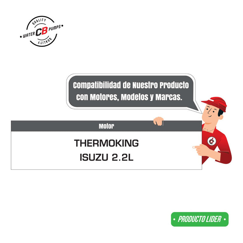 NEW WATER PUMP PREMIUM QUALITY INCLUDES: • Metal Impeller. • Installation Packaging. • Suitable for Thermo king. Improve the lifespan of your Thermoking. •Greater durability. •Water leak correction. •Free Shipping Nationwide. •100% Secure Purchase. To ensure your purchase is a good experience, we suggest observing the following points: 1.- COMPATIBILITY OF THE PART • Check that the part is compatible with your vehicle, compare it with the published photos and information. • Review Compatibility Table. 2.- DELIVERY TIME • Depending on your location is the time of reception of the product. • Enter your Zip Code to find out the Shipping Time and Methods. • Logistics, delivery times, and packaging depend on Mercado Libre. 3.- WARRANTY • All our products have a 60-day warranty (from the date you receive your product). • A broken, wet, burned, rusty and/or scale-infected part invalidates the warranty. 4.- INVOICE • Upon receiving your product, you can generate your invoice online (We'll send you the link in the purchase chat). 5.- RETURNS • The piece must come in good condition and with all accessories included. • Returns are not accepted if it has already been installed or used in your car. We are a Pumping Station with 50 years of experience. • Specialists in the Sale of Automotive Water Pumps. • For Diesel and Gasoline Engines. • All Brands and Applications (Cars, Trucks, Forklifts, Power Plants, Tractors).
