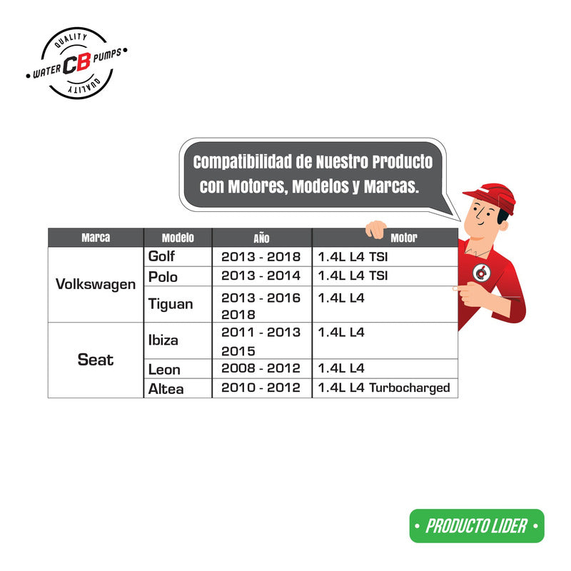 PUMPING STATION New TURBOCHARGED Water Pump, DOHC VALVE MECHANISM / INDEPENDENT ACTUATOR PULLEY PREMIUM Quality NEW WATER PUMP PREMIUM QUALITY INCLUDES: • Plastic Impeller. • Installation Packaging. • Turbocharged, DOHC Valve Mechanism / Independent Actuator Pulley. • Suitable for Car/Truck. Improve the lifespan of your car. •Greater durability. •Water leak correction. •Free Shipping Nationwide. •100% Secure Purchase. To ensure your purchase is a good experience, we suggest observing the following points: 1.- COMPATIBILITY OF THE PART • Check that the part is compatible with your vehicle, compare it with the published photos and information. • Review Compatibility Table. 2.- DELIVERY TIME • Depending on your location is the time of reception of the product. • Enter your Zip Code to find out the Shipping Time and Methods. • Logistics, delivery times, and packaging depend on Mercado Libre. 3.- WARRANTY • All our products have a 60-day warranty (from the date you receive your product). • A broken, wet, burned, rusty and/or scale-infected part invalidates the warranty. 4.- INVOICE • Upon receiving your product, you can generate your invoice online (We'll send you the link in the purchase chat). 5.- RETURNS • The piece must come in good condition and with all accessories included. • Returns are not accepted if it has already been installed or used in your car. We are a Pumping Station with 50 years of experience. • Specialists in the Sale of Automotive Water Pumps. • For Diesel and Gasoline Engines. • All Brands and Applications (Cars, Trucks, Forklifts, Power Plants, Tractors).