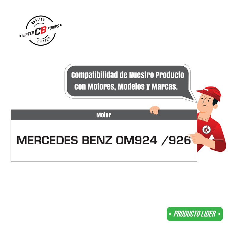 NEW WATER PUMP PREMIUM QUALITY INCLUDES: • Metallic Impeller. • Installation Packaging. • Truck Friendly. Improve the lifespan of your truck. •Greater durability. •Water leak correction. •Free Shipping Nationwide. •100% Secure Purchase. WE ALSO HAVE THE COUPLING OR CONNECTOR FOR THIS WATER PUMP https://articulo.mercadolibre.com.mx/MLM-1506537681-conector-hule-acero-para-bomba-agua-mercedes-benz-om906-904-_JM To ensure your purchase is a good experience, we suggest observing the following points: 1.- COMPATIBILITY OF THE PART • Check that the part is compatible with your vehicle, compare it with the published photos and information. • Review Compatibility Table. 2.- DELIVERY TIME • Depending on your location is the time of reception of the product. • Enter your Zip Code to find out the Shipping Time and Methods. • Logistics, delivery times, and packaging depend on Mercado Libre. 3.- WARRANTY • All our products have a 60-day warranty (from the date you receive your product). • A broken, wet, burned, rusty and/or scale-infected part invalidates the warranty. 4.- INVOICE • Upon receiving your product, you can generate your invoice online (We'll send you the link in the purchase chat). 5.- RETURNS • The piece must come in good condition and with all accessories included. • Returns are not accepted if it has already been installed or used in your car. We are a Pumping Station with 50 years of experience. • Specialists in the Sale of Automotive Water Pumps. • For Diesel and Gasoline Engines. • All Brands and Applications (Cars, Trucks, Forklifts, Power Plants, Tractors).