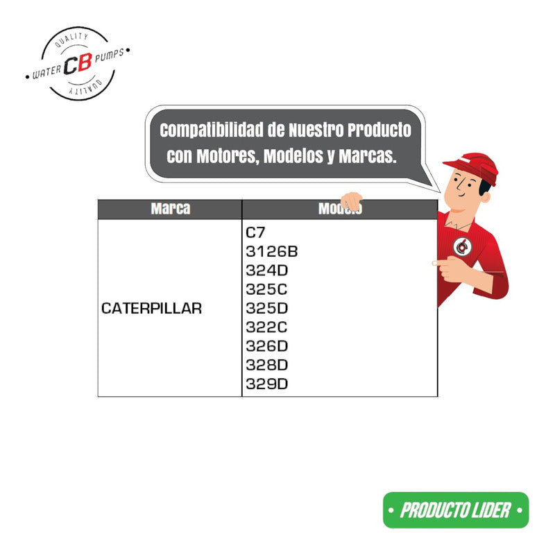 NEW WATER PUMP PREMIUM QUALITY INCLUDES: • Metal Impeller. • Installation Packaging. • Suitable for Truck/Industrial Engine. Improve the lifespan of your truck. •Greater durability. •Water leak correction. •Free Shipping Nationwide. •100% Secure Purchase. To ensure your purchase is a good experience, we suggest observing the following points: 1.- COMPATIBILITY OF THE PART • Check that the part is compatible with your vehicle, compare it with the published photos and information. • Review Compatibility Table. 2.- DELIVERY TIME • Depending on your location is the time of reception of the product. • Enter your Zip Code to find out the Shipping Time and Methods. • Logistics, delivery times, and packaging depend on Mercado Libre. 3.- WARRANTY • All our products have a 60-day warranty (from the date you receive your product). • A broken, wet, burned, rusty and/or scale-infected part invalidates the warranty. 4.- INVOICE • Upon receiving your product, you can generate your invoice online (We'll send you the link in the purchase chat). 5.- RETURNS • The piece must come in good condition and with all accessories included. • Returns are not accepted if it has already been installed or used in your car. We are a Pumping Station with 50 years of experience. • Specialists in the Sale of Automotive Water Pumps. • For Diesel and Gasoline Engines. • All Brands and Applications (Cars, Trucks, Forklifts, Power Plants, Tractors).