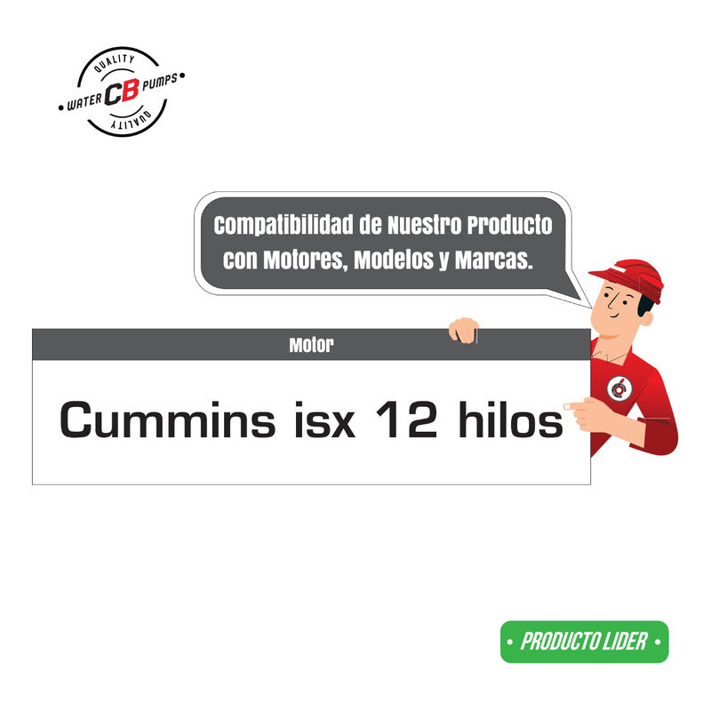 NEW WATER PUMP PREMIUM QUALITY INCLUDES: • Metal Impeller. • Installation Packaging. • Truck Friendly. Improve the lifespan of your truck. •Greater durability. •Water leak correction. •Free Shipping Nationwide. •100% Secure Purchase. To ensure your purchase is a good experience, we suggest observing the following points: 1.- COMPATIBILITY OF THE PART • Check that the part is compatible with your vehicle, compare it with the published photos and information. • Review Compatibility Table. 2.- DELIVERY TIME • Depending on your location is the time of reception of the product. • Enter your Zip Code to find out the Shipping Time and Methods. • Logistics, delivery times, and packaging depend on Mercado Libre. 3.- WARRANTY • All our products have a 60-day warranty (from the date you receive your product). • A broken, wet, burned, rusty and/or scale-infected part invalidates the warranty. 4.- INVOICE • Upon receiving your product, you can generate your invoice online (We'll send you the link in the purchase chat). 5.- RETURNS • The piece must come in good condition and with all accessories included. • Returns are not accepted if it has already been installed or used in your car. We are a Pumping Station with 50 years of experience. • Specialists in the Sale of Automotive Water Pumps. • For Diesel and Gasoline Engines. • All Brands and Applications (Cars, Trucks, Forklifts, Power Plants, Tractors).
