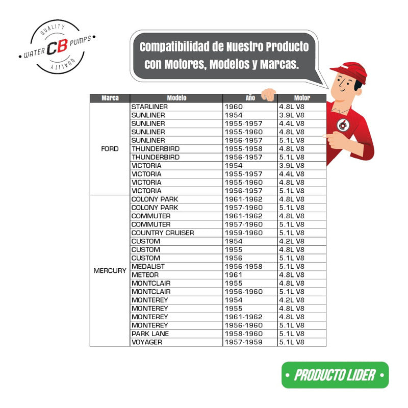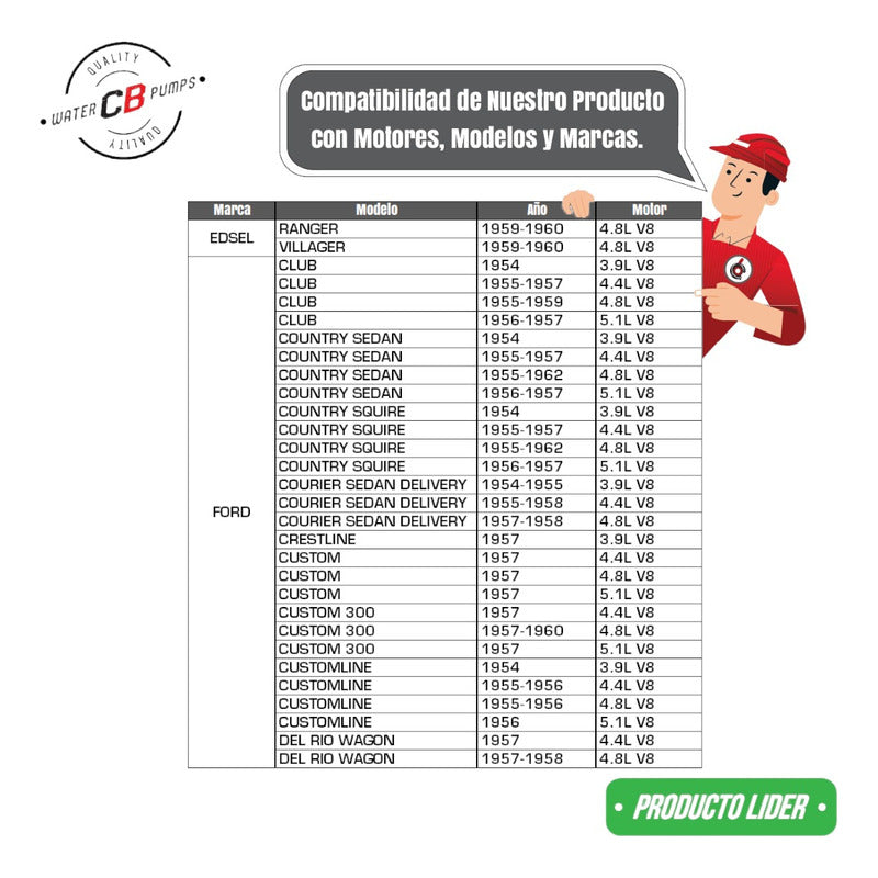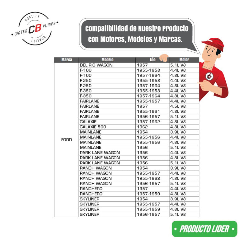 PUMPING STATION New Water Pump Imported from the USA PREMIUM Quality Thank you for visiting us, we are at your service. We recommend checking that the part is compatible with your vehicle, using the photos shown in the publication. If you have any questions, please ask us; we're here to help. We are a company specializing in the sale of new water pumps for diesel and gasoline engines for all brands and applications (cars, tractors, forklifts, power plants, tractors, heavy machinery, among others). We have 45 years of experience behind us. Our goal is to provide our customers with security, confidence, quality, and service. SHIPMENT Most of our products include free shipping; however, if the product doesn't, you can calculate it yourself by entering your zip code. Please check the product listing next to the price to see if it includes free shipping or a fee, and you can choose the delivery method (home delivery or post office delivery). Shipping delays depend on the carrier's workload, holidays, and the destination you're traveling to. You can calculate it yourself by entering your zip code to receive an estimate closer to your region. In large cities in the country it usually takes 24-48 hours. Please note that most courier companies deliver on business days. WARRANTY All our products are guaranteed against any manufacturing defects or malfunctions, valid for 60 days (from the date you receive your product). Broken, wet, burned, rusty and/or scaled material invalidates the warranty. BILL Yes, we do. Ask our advisor. Thank you for visiting our portal. We want your purchase to be a good experience.