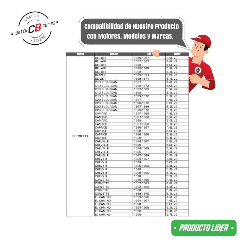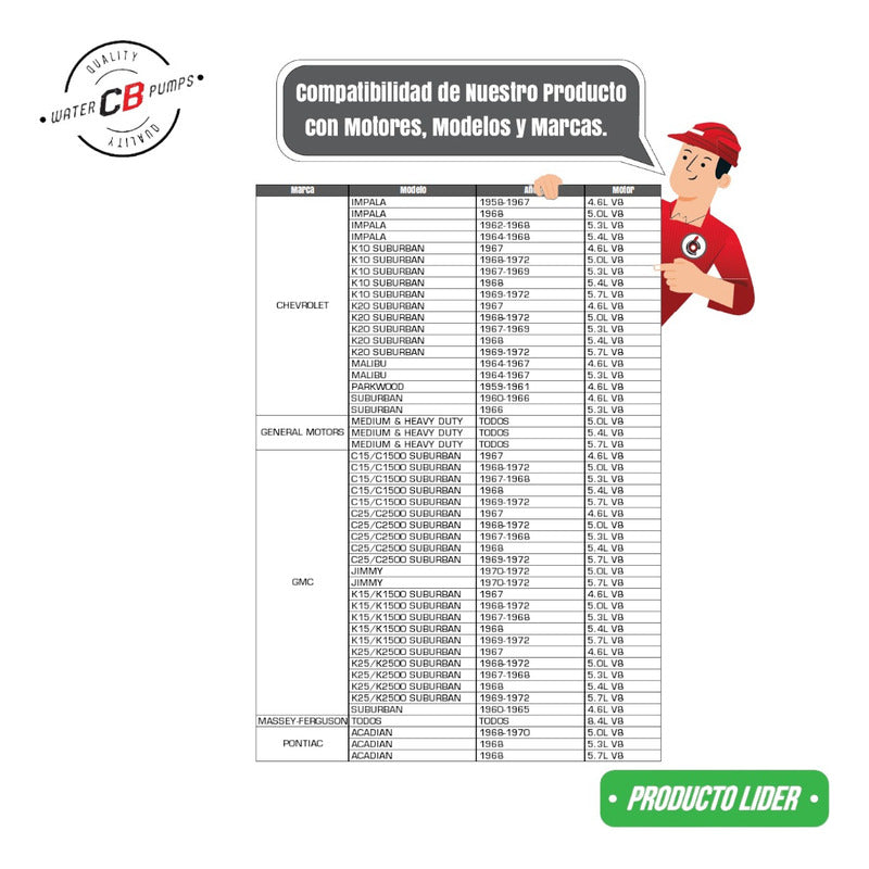 PUMPING STATION New Water Pump Imported from the USA PREMIUM Quality Thank you for visiting us, we are at your service. We recommend checking that the part is compatible with your vehicle, using the photos shown in the publication. If you have any questions, please ask us; we're here to help. We are a company specializing in the sale of new water pumps for diesel and gasoline engines for all brands and applications (cars, tractors, forklifts, power plants, tractors, heavy machinery, among others). We have 45 years of experience behind us. Our goal is to provide our customers with security, confidence, quality, and service. SHIPMENT Most of our products include free shipping; however, if the product doesn't, you can calculate it yourself by entering your zip code. Please check the product listing next to the price to see if it includes free shipping or a fee, and you can choose the delivery method (home delivery or post office delivery). Shipping delays depend on the carrier's workload, holidays, and the destination you're traveling to. You can calculate it yourself by entering your zip code to receive an estimate closer to your region. In large cities in the country it usually takes 24-48 hours. Please note that most courier companies deliver on business days. FULL SHIPPING Several of our publications offer Full Shipping, where you receive your product faster and well protected, shipped directly from the Mercado Libre warehouse. WARRANTY All our products are guaranteed against any manufacturing defects or malfunctions, valid for 60 days (from the date you receive your product). Broken, wet, burned, rusty and/or scaled material invalidates the warranty. BILL Yes, we do. Ask our advisor. Thank you for visiting our portal. We want your purchase to be a good experience.