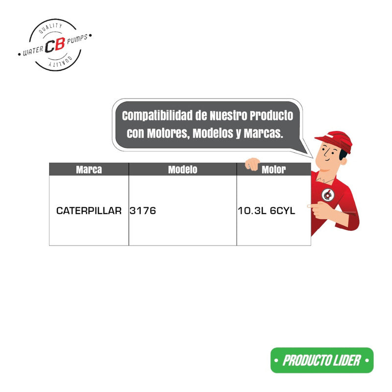 NEW WATER PUMP PREMIUM QUALITY INCLUDES: • Metal Impeller. • Installation Packaging. • Truck Friendly. Improve the lifespan of your truck. •Greater durability. •Water leak correction. •Free Shipping Nationwide. •100% Secure Purchase. To ensure your purchase is a good experience, we suggest observing the following points: 1.- COMPATIBILITY OF THE PART • Check that the part is compatible with your vehicle, compare it with the published photos and information. • Review Compatibility Table. 2.- DELIVERY TIME • Depending on your location is the time of reception of the product. • Enter your Zip Code to find out the Shipping Time and Methods. • Logistics, delivery times, and packaging depend on Mercado Libre. 3.- WARRANTY • All our products have a 60-day warranty (from the date you receive your product). • A broken, wet, burned, rusty and/or scale-infected part invalidates the warranty. 4.- INVOICE • Upon receiving your product, you can generate your invoice online (We'll send you the link in the purchase chat). 5.- RETURNS • The piece must come in good condition and with all accessories included. • Returns are not accepted if it has already been installed or used in your car. We are a Pumping Station with 50 years of experience. • Specialists in the Sale of Automotive Water Pumps. • For Diesel and Gasoline Engines. • All Brands and Applications (Cars, Trucks, Forklifts, Power Plants, Tractors).