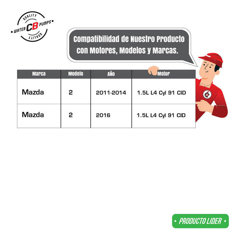 NEW WATER PUMP PREMIUM QUALITY INCLUDES: • Metal Impeller. • Installation Packaging. • Suitable for Car/Truck. Improve the lifespan of your car. •Greater durability. •Water leak correction. •Free Shipping Nationwide. •100% Secure Purchase. To ensure your purchase is a good experience, we suggest observing the following points: 1.- PART COMPATIBILITY • Check that the part is compatible with your vehicle, compare it with the published photos and information. • Review Compatibility Table. 2.- DELIVERY TIME • Depending on your location is the time of reception of the product. • Enter your Zip Code to find out the Shipping Time and Methods. • Logistics, delivery times, and packaging depend on Mercado Libre. 3.- WARRANTY • All our products have a 60-day warranty (from the date you receive your product). • A broken, wet, burned, rusty and/or scale-infected part invalidates the warranty. 4.- INVOICE • Upon receiving your product, you can generate your invoice online (We'll send you the link in the purchase chat). 5.- RETURNS • The piece must come in good condition and with all accessories included. • Returns are not accepted if it has already been installed or used in your car. We are a Pumping Station with 50 years of experience. • Specialists in the Sale of Automotive Water Pumps. • For Diesel and Gasoline Engines. • All Brands and Applications (Cars, Trucks, Forklifts, Power Plants, Tractors).