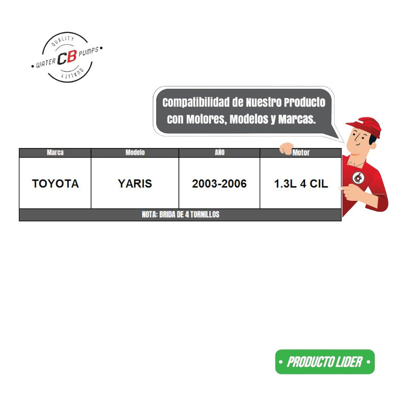 Water Pump Toyota Yaris 1.3l 2003-2006 Pulley 4 Bolts