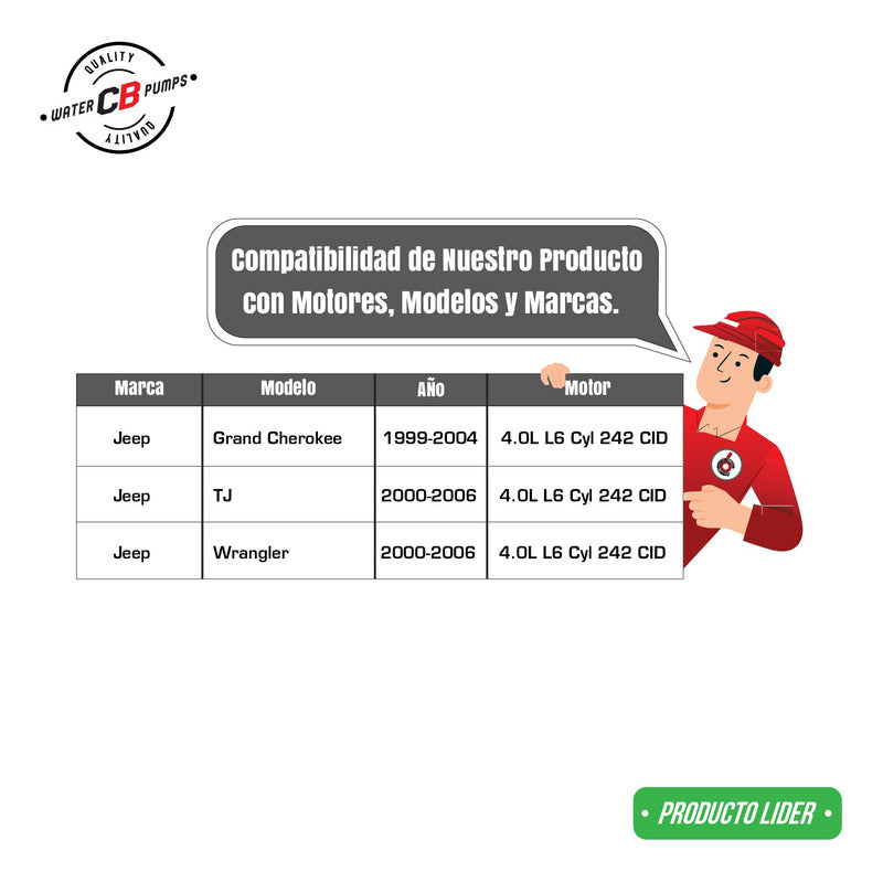 NEW WATER PUMP PREMIUM QUALITY INCLUDES: • Plastic Impeller. • Installation Packaging. • Suitable for Car/Truck. Improve the lifespan of your car. •Greater durability. •Water leak correction. •Free Shipping Nationwide. •100% Secure Purchase. To ensure your purchase is a good experience, we suggest observing the following points: 1.- COMPATIBILITY OF THE PART • Check that the part is compatible with your vehicle, compare it with the published photos and information. • Review Compatibility Table. 2.- DELIVERY TIME • Depending on your location is the time of reception of the product. • Enter your Zip Code to find out the Shipping Time and Methods. • Logistics, delivery times, and packaging depend on Mercado Libre. 3.- WARRANTY • All our products have a 60-day warranty (from the date you receive your product). • A broken, wet, burned, rusty and/or scale-infected part invalidates the warranty. 4.- INVOICE • Upon receiving your product, you can generate your invoice online (We'll send you the link in the purchase chat). 5.- RETURNS • The piece must come in good condition and with all accessories included. • Returns are not accepted if it has already been installed or used in your car. We are a Pumping Station with 50 years of experience. • Specialists in the Sale of Automotive Water Pumps. • For Diesel and Gasoline Engines. • All Brands and Applications (Cars, Trucks, Forklifts, Power Plants, Tractors).