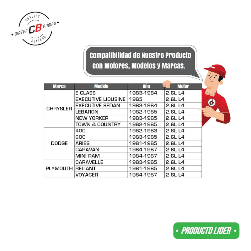 Model: Chrysler E-CLASS 1983-1984 LeBaron 1982-1985 New Yorker 1983-1985 Town&Country 1982 1984-1985 DODGE 400 1982-1983 600 1983-1985 Aries 1981-1985 Caravan 1984-1987 Mini Ram 1984-1987 Reliant 1981-1985 Voyager 1984-1987 Caravelle 1985 2.6l L4