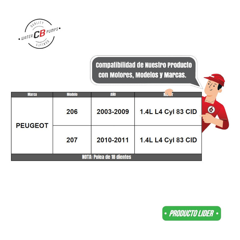 Modelo: PEUGEOT 206 2003-2009 1.4L 207 2009-2011 1.4L L4 POLEA DE 18 DIENTES