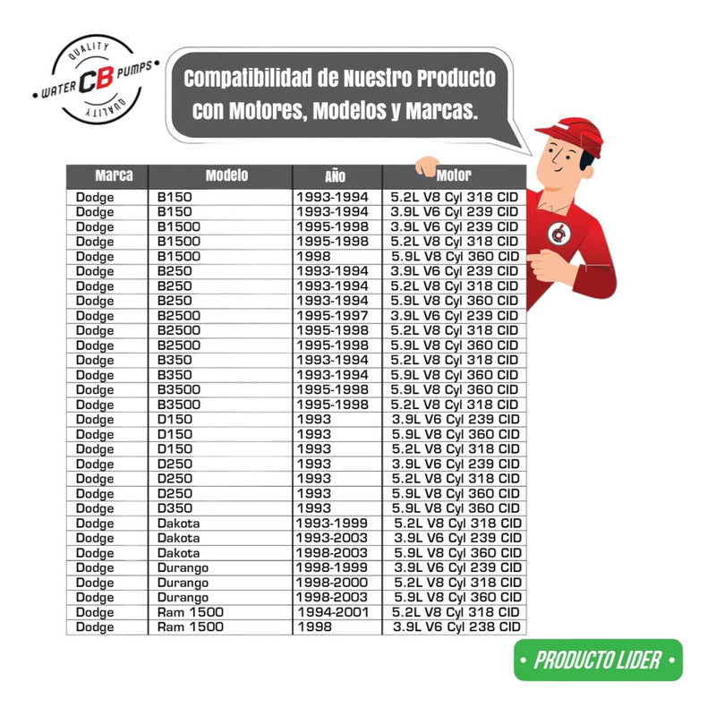 Bomba De Agua Durango Dakota Ram 1500 2500 3500 3.9 5.2 5.9l