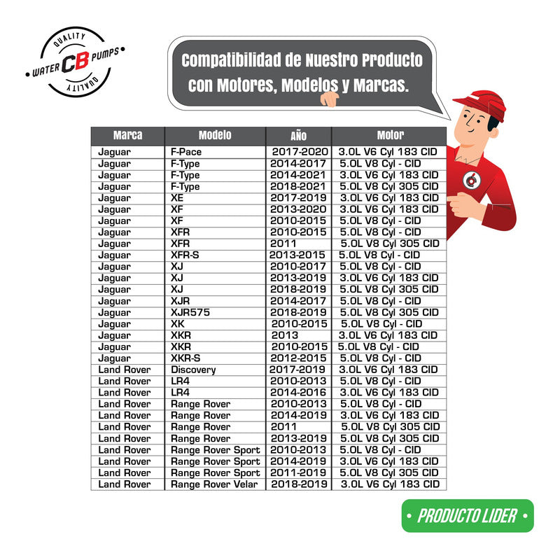 Bomba De Agua Land Rover 3.0l 5.0l 12-17 Range Rover Lr4