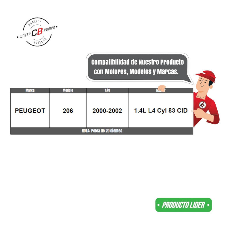 Modelo: PEUGEOT 206 2000-2004 1.4L L4 (POLEA DE 20 DIENTES)