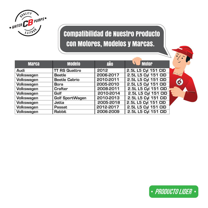 Modelo: VW Beetle 2006-2017 2.5l Bora 2005-2010 2.5l Crafter 2008-2011 2.5l Golf 2010-2014 2.5l Jetta 2005-2017 2.5l Passat 2012-2017 2.5l Rabbit 2006-2009 2.5l L5