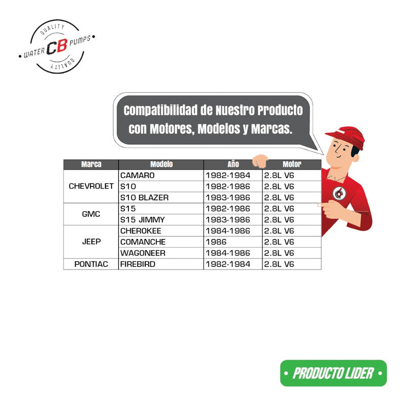Modelo: CHEVROLET Camaro 1982-1984 2.8l S10 1982-1986 2.8l S10 Blazer 1983-19862.8l JEEP Cherokee 1984-1986 2.8l Comanche 1986 2.8l Wagoneer 1984-1986 2.8l PONTIAC Firebird 1982-1984 2.8l GMC S15 1982-1986 2.8l V6