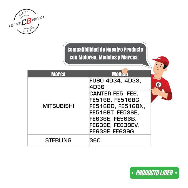 NOVA BOMBA DE ÁGUA QUALIDADE PREMIUM INCLUI: • Impulsor de metal. • Embalagem de instalação. • Amigo dos caminhões. Aumente a vida útil do seu caminhão. •Maior durabilidade. •Correção de vazamento de água. •Frete grátis para todo o país. •Compra 100% segura. Para garantir que sua compra seja uma boa experiência, sugerimos observar os seguintes pontos: 1.- COMPATIBILIDADE DA PEÇA • Verifique se a peça é compatível com seu veículo, compare com as fotos e informações publicadas. • Revise a Tabela de Compatibilidade. 2.- PRAZO DE ENTREGA • O tempo de recebimento do produto depende da sua localização. • Digite seu CEP para descobrir o prazo e os métodos de envio. • Logística, prazos de entrega e embalagem dependem do Mercado Livre. 3.- GARANTIA • Todos os nossos produtos têm garantia de 60 dias (a partir da data de recebimento do produto). • Uma peça quebrada, molhada, queimada, enferrujada e/ou infectada por incrustações invalida a garantia. 4.- FATURA • Ao receber seu produto, você poderá gerar sua nota fiscal online (Enviaremos o link no chat de compra). 5.- DEVOLUÇÕES • A peça deve vir em bom estado e com todos os acessórios inclusos. • Não serão aceitas devoluções se o produto já tiver sido instalado ou utilizado no seu carro. Somos uma Estação de Bombeamento com 50 anos de experiência. • Especialistas na Venda de Bombas D'água Automotivas. • Para motores a diesel e gasolina. • Todas as marcas e aplicações (carros, caminhões, empilhadeiras, usinas de energia, tratores).