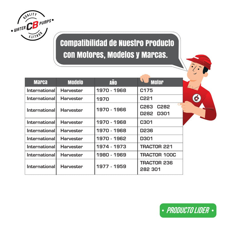 NOVA BOMBA DE ÁGUA QUALIDADE PREMIUM INCLUI: • Impulsor metálico. • Embalagem de instalação • Amigo dos caminhões. Aumente a vida útil do seu carro. •Maior durabilidade. •Correção de vazamento de água. •Frete grátis para todo o país. •Compra 100% segura. Para garantir que sua compra seja uma boa experiência, sugerimos observar os seguintes pontos: 1.- COMPATIBILIDADE DA PEÇA • Verifique se a peça é compatível com seu veículo, compare com as fotos e informações publicadas. • Revise a Tabela de Compatibilidade. 2.- PRAZO DE ENTREGA • O tempo de recebimento do produto depende da sua localização. • Digite seu CEP para descobrir o prazo e os métodos de envio. • Logística, prazos de entrega e embalagem dependem do Mercado Livre. 3.- GARANTIA • Todos os nossos produtos têm garantia de 60 dias (a partir da data de recebimento do produto). • Uma peça quebrada, molhada, queimada, enferrujada e/ou infectada por incrustações invalida a garantia. 4.- FATURA • Ao receber seu produto, você poderá gerar sua nota fiscal online (Enviaremos o link no chat de compra). 5.- DEVOLUÇÕES • A peça deve vir em bom estado e com todos os acessórios inclusos. • Não serão aceitas devoluções se o produto já tiver sido instalado ou utilizado no seu carro. Somos uma Estação de Bombeamento com 50 anos de experiência. • Especialistas na Venda de Bombas D'água Automotivas. • Para motores a diesel e gasolina. • Todas as marcas e aplicações (carros, caminhões, empilhadeiras, usinas de energia, tratores).