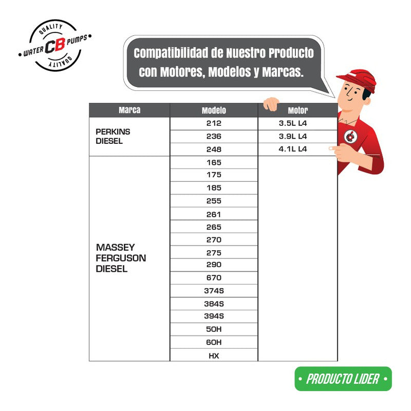 NOVA BOMBA DE ÁGUA QUALIDADE PREMIUM INCLUI: • Impulsor de metal. • Embalagem de instalação. • Adequado para trator. Aumente a vida útil do seu trator. •Maior durabilidade. •Correção de vazamento de água. •Frete grátis para todo o país. •Compra 100% segura. Para garantir que sua compra seja uma boa experiência, sugerimos observar os seguintes pontos: 1.- COMPATIBILIDADE DA PEÇA • Verifique se a peça é compatível com seu veículo, compare com as fotos e informações publicadas. • Revise a Tabela de Compatibilidade. 2.- PRAZO DE ENTREGA • O tempo de recebimento do produto depende da sua localização. • Digite seu CEP para descobrir o prazo e os métodos de envio. • Logística, prazos de entrega e embalagem dependem do Mercado Livre. 3.- GARANTIA • Todos os nossos produtos têm garantia de 60 dias (a partir da data de recebimento do produto). • Uma peça quebrada, molhada, queimada, enferrujada e/ou infectada por incrustações invalida a garantia. 4.- FATURA • Ao receber seu produto, você poderá gerar sua nota fiscal online (Enviaremos o link no chat de compra). 5.- DEVOLUÇÕES • A peça deve vir em bom estado e com todos os acessórios inclusos. • Não serão aceitas devoluções se o produto já tiver sido instalado ou utilizado no seu carro. Somos uma Estação de Bombeamento com 50 anos de experiência. • Especialistas na Venda de Bombas D'água Automotivas. • Para motores a diesel e gasolina. • Todas as marcas e aplicações (carros, caminhões, empilhadeiras, usinas de energia, tratores).