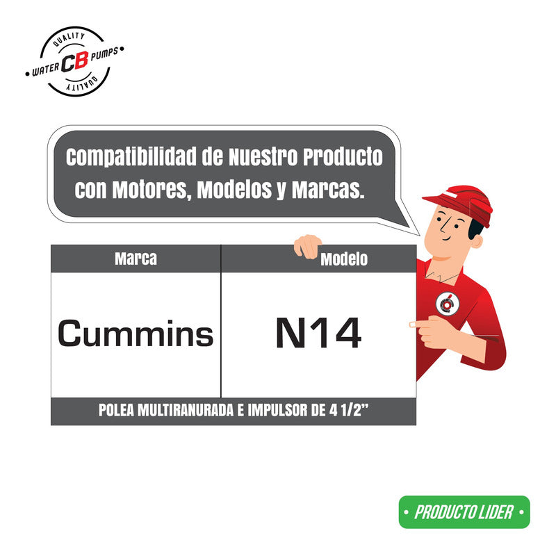 Modelo: CUMMINS N14 6L com polia multi-ranhuras e impulsor de 4 1/2"