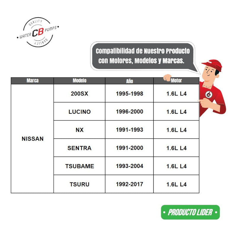 Modelo: NISSAN Tsuru 1.6L L4 (MECANISMO DE VÁLVULAS DOHC/MICROV Acionado por FAIXA) Tsubame Sentra Lucino NX 1988 - 2017 1.6l L4