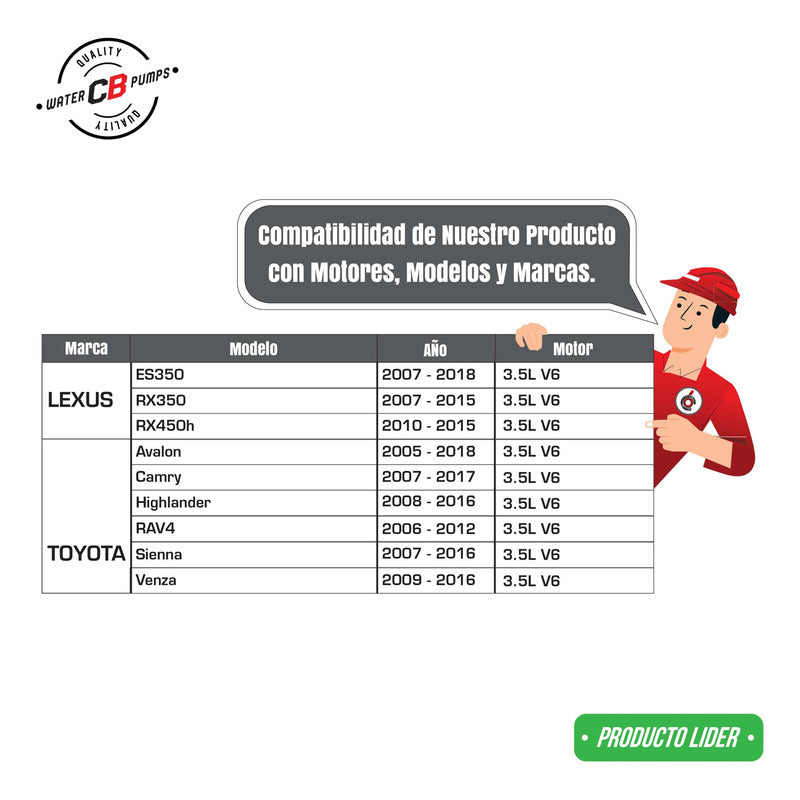 Modelo: TOYOTA CAMRY AVALON HIGHLANDER RAV4 SIENNA VENZA LEXUS ES350 RX350 RX450H 2006-2018 3,5L